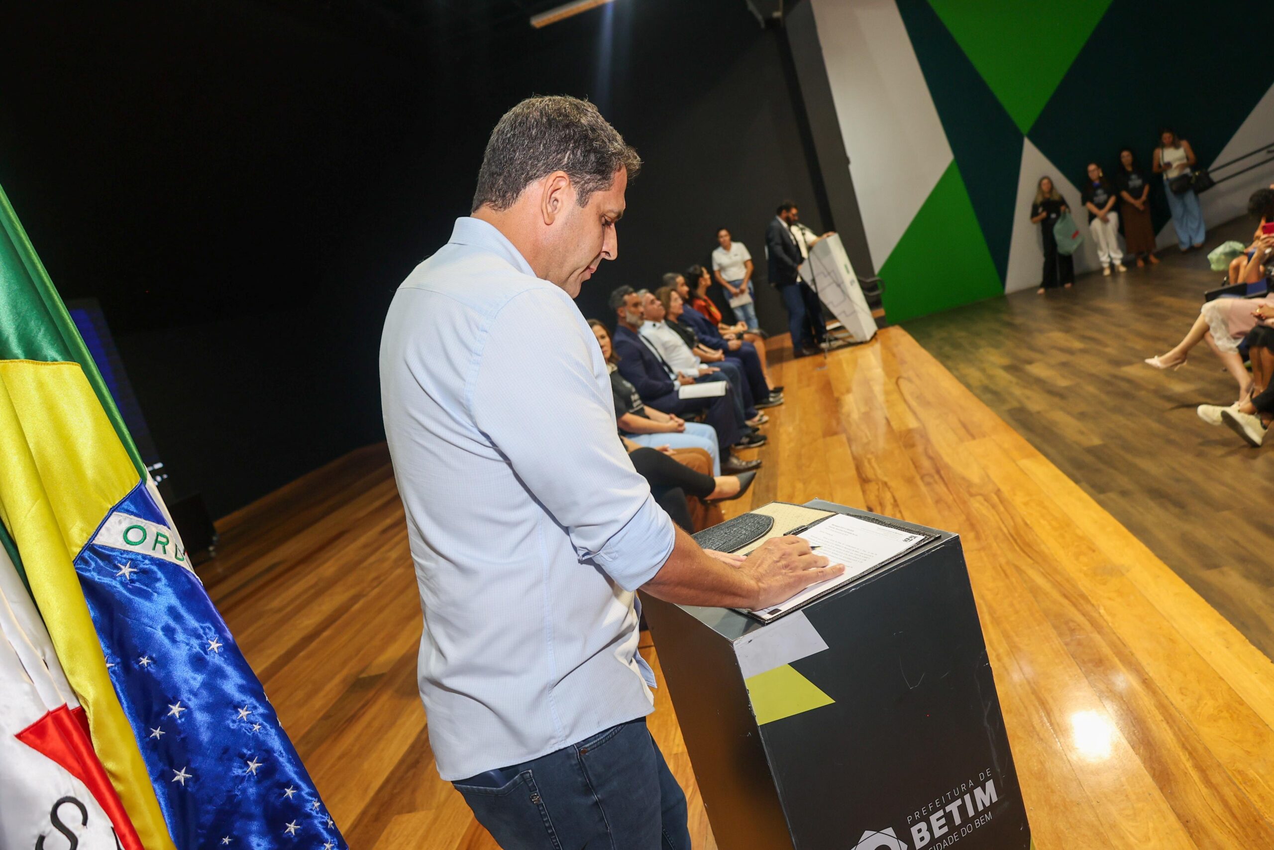 O prefeito de Betim, Heron Guimarães, sancionou, na noite desta segunda-feira (15), a Lei que institui a Política Municipal da Pessoa com Deficiência e com Mobilidade Reduzida. A solenidade que marcou a sanção foi realizada no auditório Ady Rosa de Freitas, no Centro Administrativo, e contou com a presença de integrantes da alta gestão; do promotor de Justiça da Comarca de Betim, Spencer dos Santos; do vereador presidente da Comissão Permanente de Proteção à Pessoa com Deficiência da Câmara, Gilberto Mendes; e do presidente do Conselho Municipal da Pessoa com Deficiência, Marcel Medeiros, dentre outros convidados.
