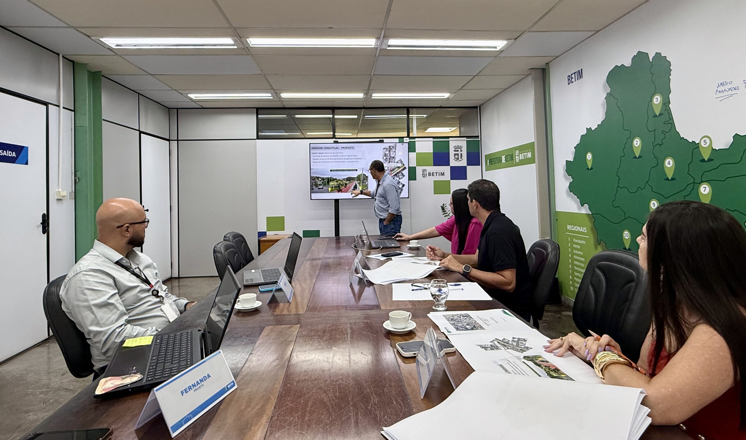O prefeito Heron Guimarães recebeu, na manhã desta sexta-feira (16), a equipe técnica da Projeta, empresa responsável pela elaboração e apresentação final das soluções de engenharia de três importantes obras de infraestrutura e mobilidade urbana que serão realizadas em Betim. As intervenções serão custeadas com recursos da Vale S.A., no âmbito do acordo de reparação pelo desastre de Brumadinho.