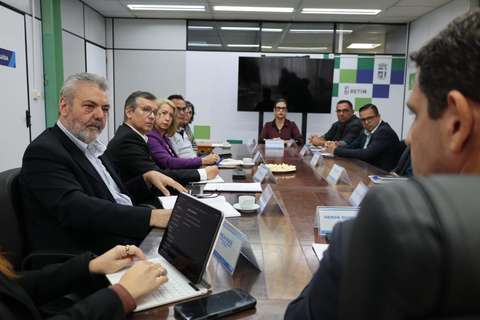 O prefeito Heron Guimarães, acompanhado de integrantes da gestão municipal, se reuniu, na manhã desta terça-feira (10), em seu gabinete, com a alta diretoria da Stellantis para tratar de temas institucionais e do fortalecimento da relação entre a indústria e o município.