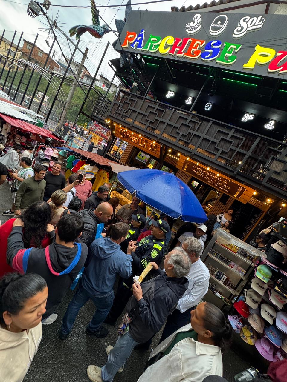 A programação incluiu ainda a caminhada pelas ruas da Comuna 13, hoje marcadas por comércio ativo, bares, manifestações culturais e intenso fluxo turístico. O percurso levou às famosas escadas rolantes instaladas nas encostas do bairro. Antes da intervenção, o acesso às áreas mais altas era feito por centenas de degraus íngremes. A implantação das escadas reduziu o tempo de deslocamento, integrou a região ao restante da cidade e impulsionou o desenvolvimento econômico local.