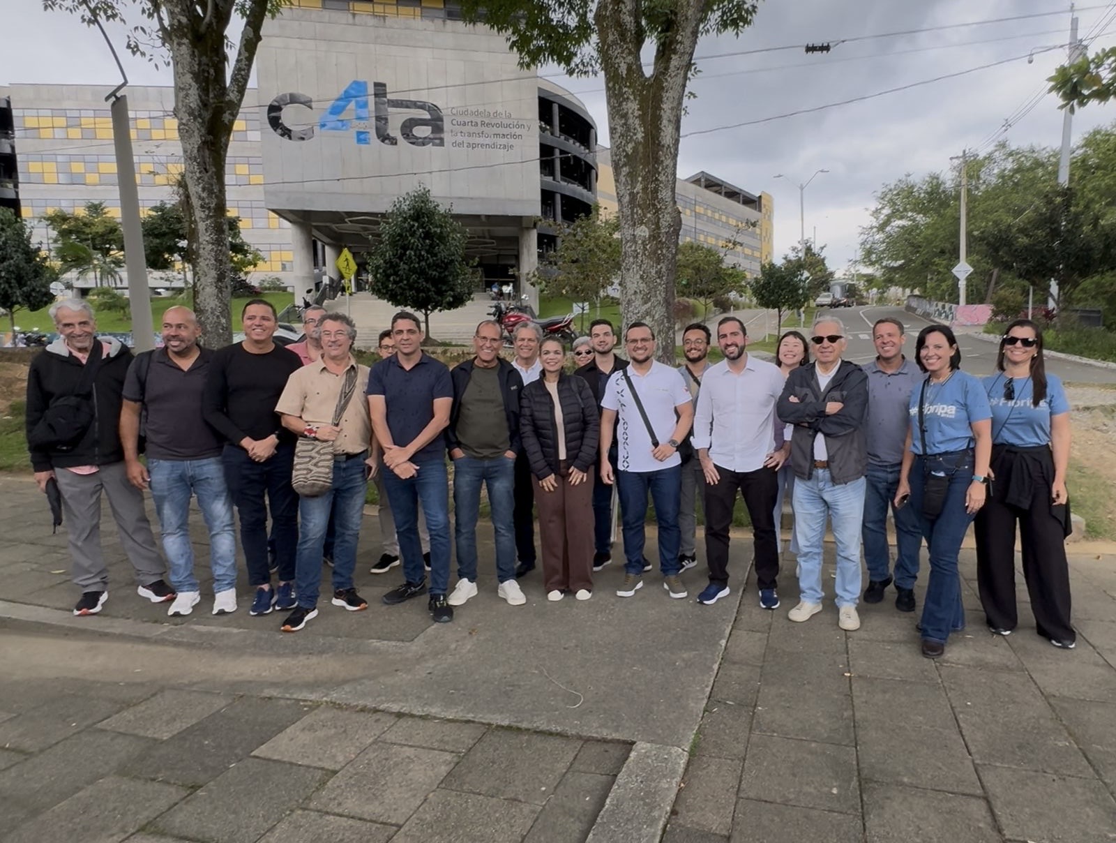A agenda teve início no Centro para la Cuarta Revolución Industrial de Medellín (C4TA), localizado no entorno do Parque del Río Medellín, no Distrito de Inovação, próximo ao complexo Ruta N. O equipamento funciona como polo de articulação entre tecnologia, indústria 4.0 e governança pública, reunindo iniciativas voltadas à transformação digital, inteligência artificial e inovação aplicada à gestão urbana. A visita permitiu compreender como Medellín integrou desenvolvimento tecnológico e planejamento territorial como parte de uma estratégia estruturada de requalificação da cidade.