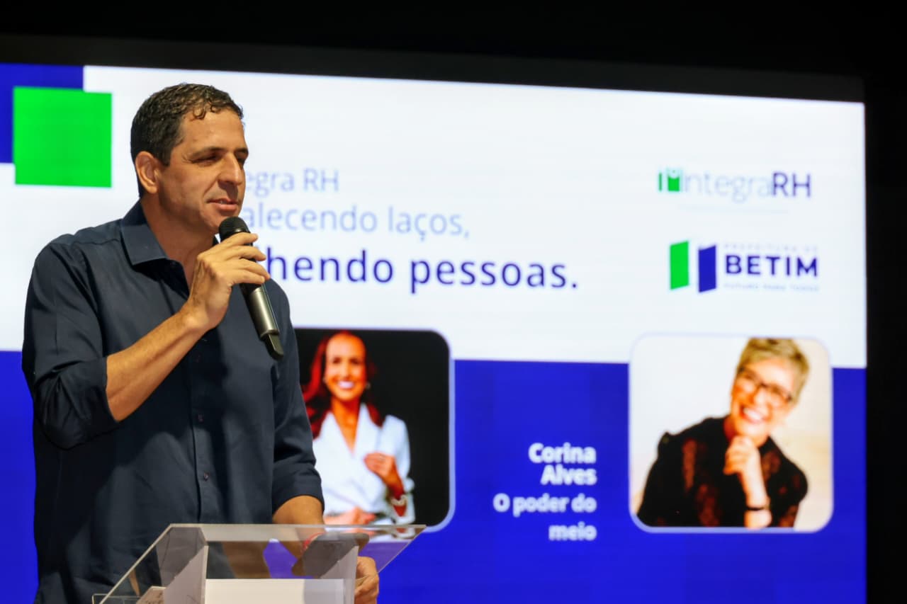 A manhã desta sexta-feira (7) foi dedicada à integração e ao fortalecimento das equipes de gestão de pessoas da Prefeitura de Betim. No auditório do Centro Administrativo, o prefeito Heron Guimarães participou da abertura do 1º Integra RH, encontro voltado ao desenvolvimento dos servidores da Secretaria Adjunta de Recursos Humanos, com foco em relacionamento, acolhimento e aprimoramento das habilidades emocionais no ambiente de trabalho.